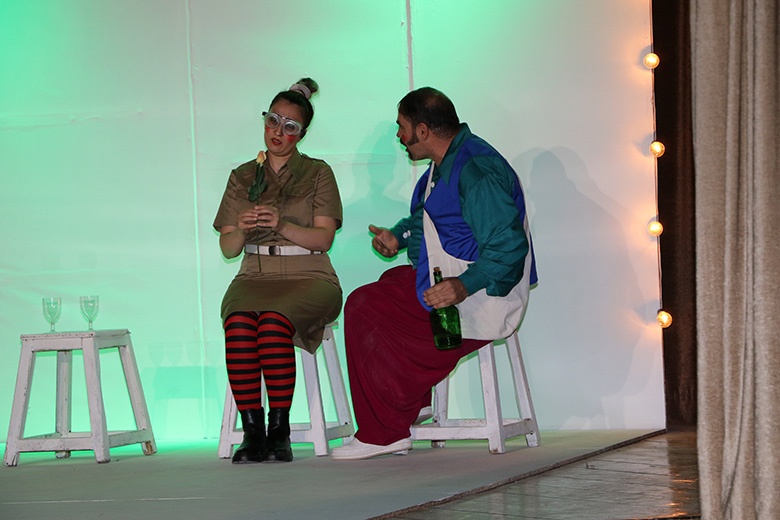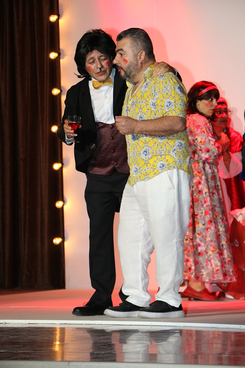 Թատրոնի դերակատարներն ու կերպարներն էին՝ Ժոզեֆ Գրիգորեանը (Ասկանազ), Զարենուշ Աղուրեանը (Ժաքլին), Հրաչ Տէր-Յովհաննիսեանը (ռեժիսոր), Հայդուկ Վարդեւանը (Վալոդ), Մարինէ Հայրապետեանը (Սոնիա), Կարօ Յովսէփեանը (Կարօ), Լինա Մանուկեանը (Մարգարիտ), Անահիտ Իսմայիլեանը (Անահիտ), Արթուր Բաղրամեանն (Մարտիկ) ու Թանիա Յովսէփեանը (Լուսինէ):