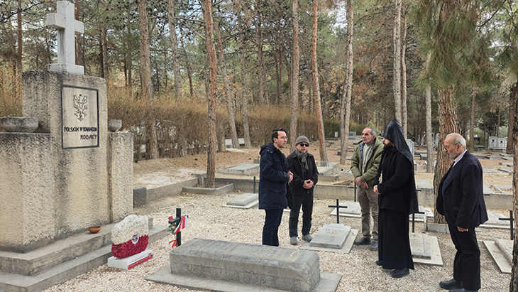 Հայր Սուրբին եւ նրան ընկերակցող Կրօնական ու Թեմական խորհուրդների ներկայացուցիչներ Տէր Խաչատուր քհնյ. Զարգարեանին եւ Սարմէն Մինասեանին դիմաւորեց Ն. Ջ. հայոց գերեզմանատան բարեզարդման մարմնի ատենապետ Էդիկ Ղազարեանը։
