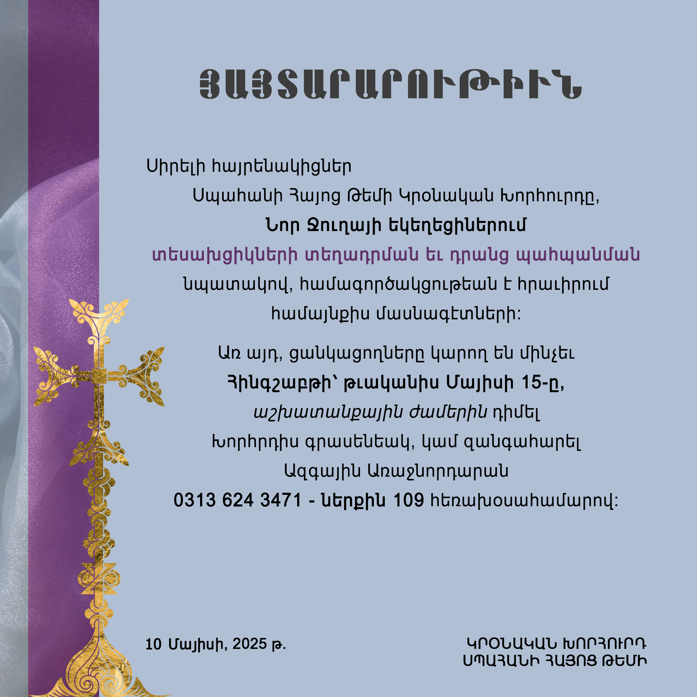 Կրօնական խորհրդի 10 մայիս 2025 թ. յայտարարութիւն