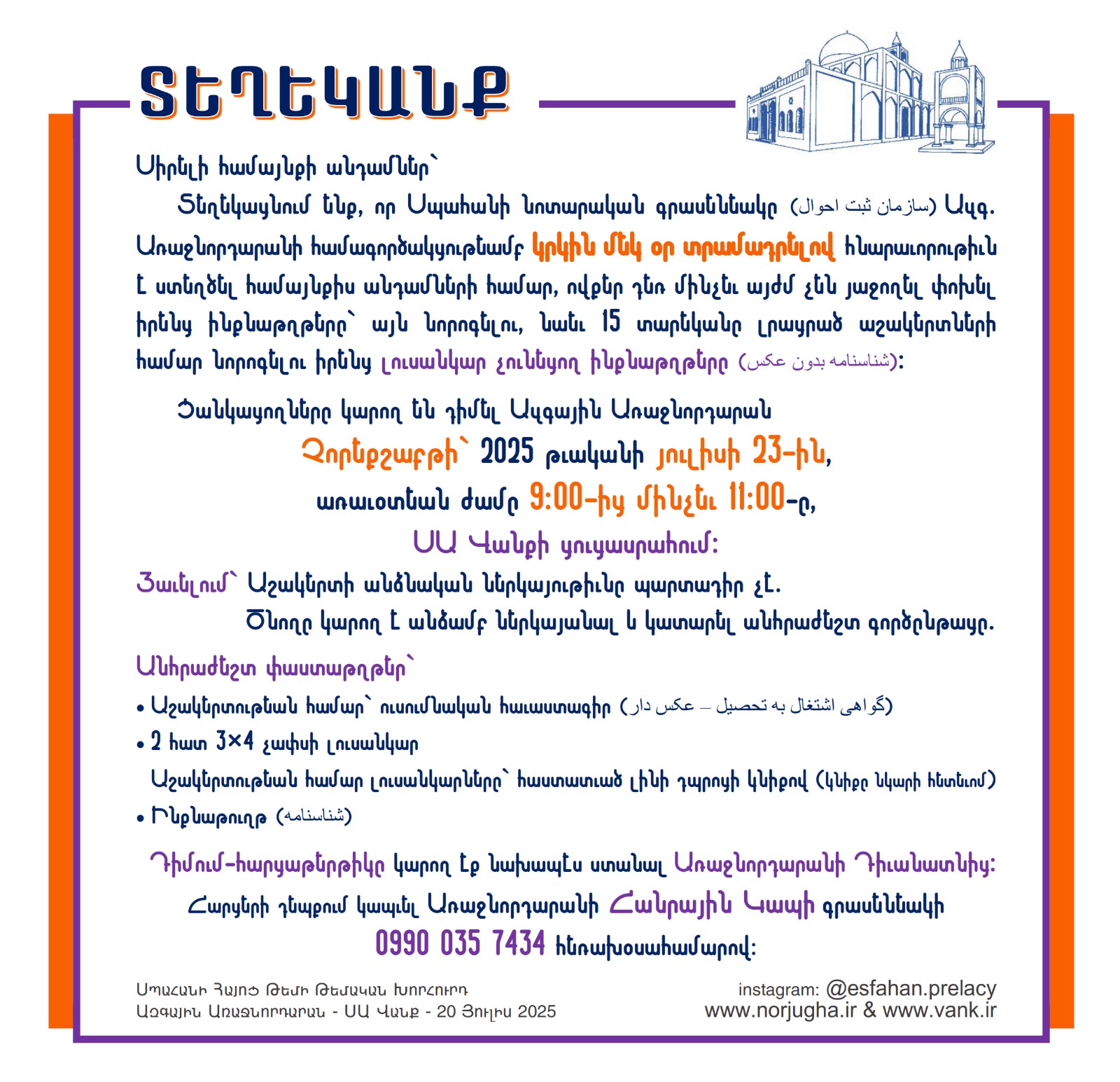 20 Յուլիս 2025 թ. տեղեկանք