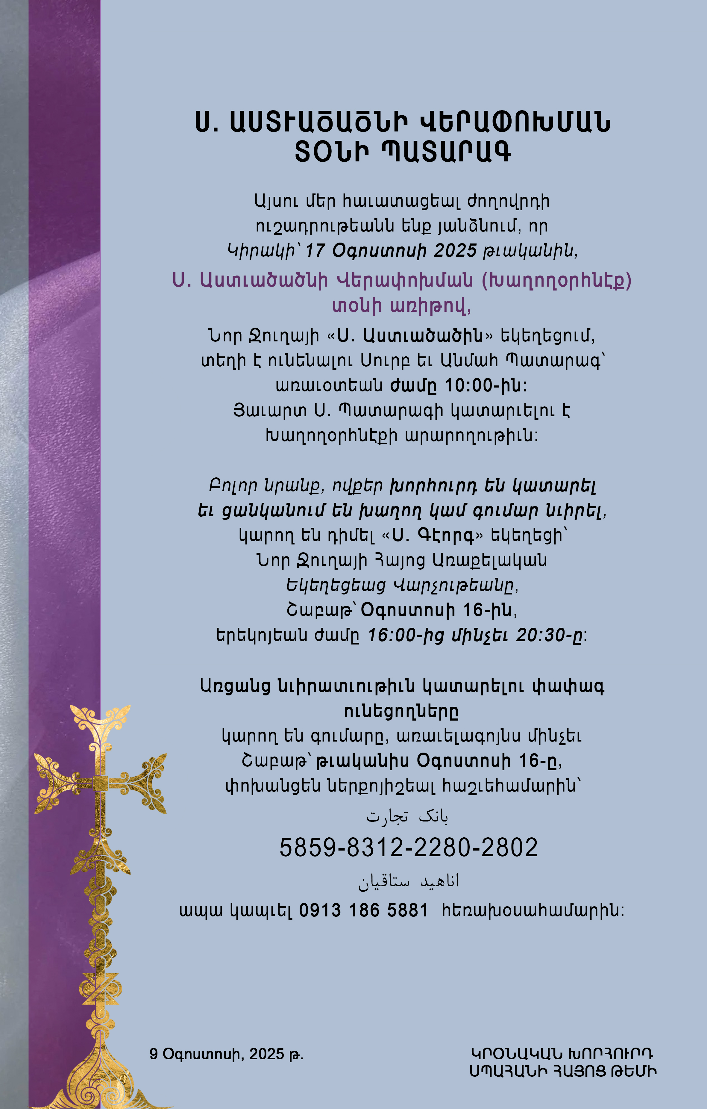 Կրօնական խորհրդի 9 օգոստոս 2025 թ. յայտարարութիւն