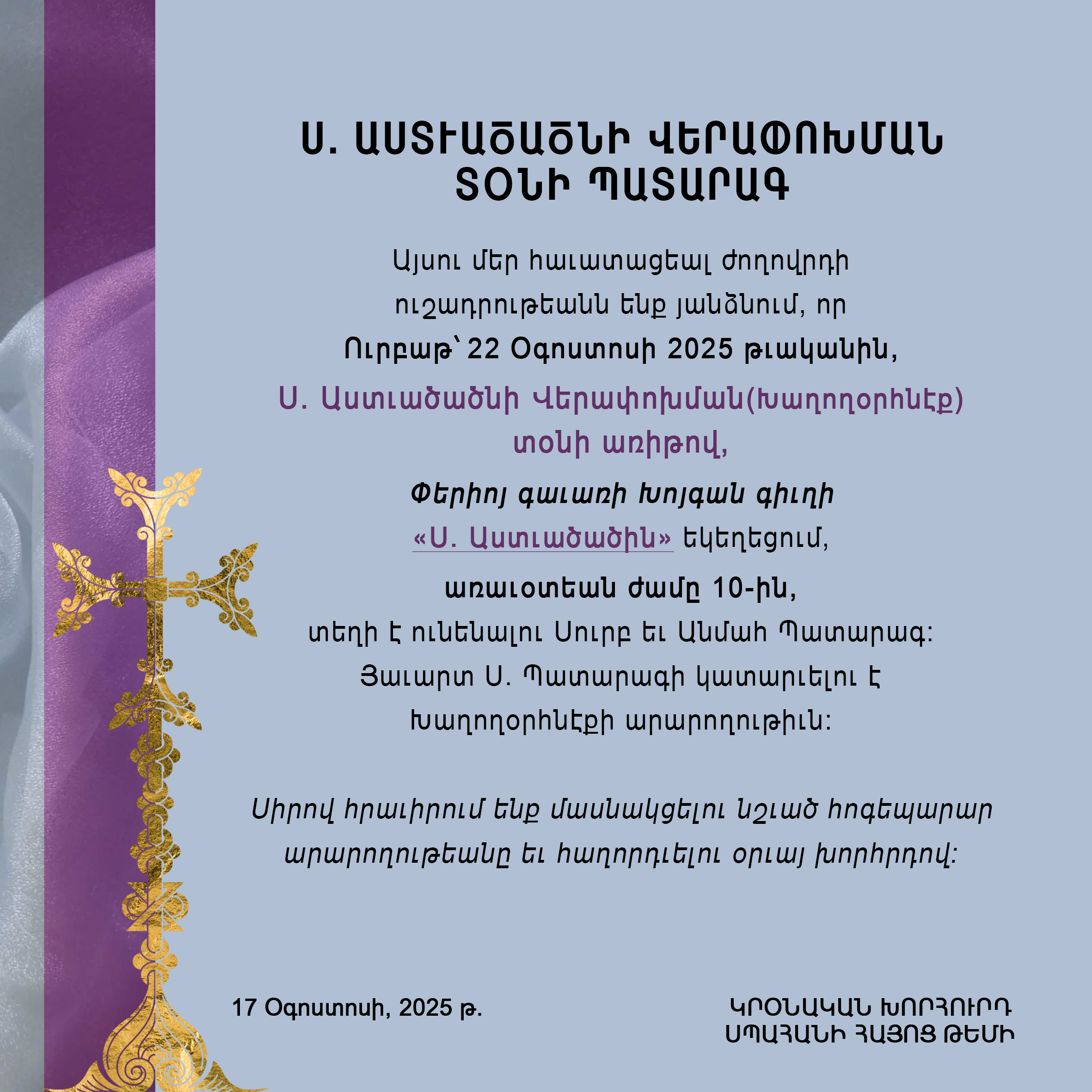 Կրօնական խորհրդի 17 օգոստոս 2025 թ. յայտարարութիւն