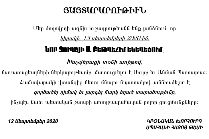 Սուրբ եւ Անմահ Պատարագ Խաչվերացի տօնի առթիւ