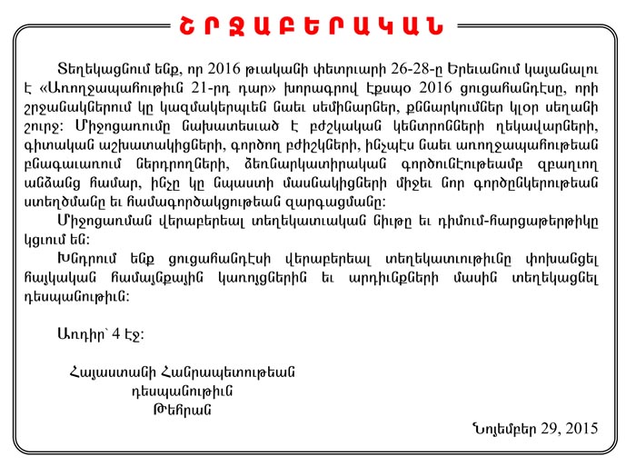 Իրանում ՀՀ Դեսպանութեան պաշտօնական յայտարարութիւնը բեռնել այստեղից։